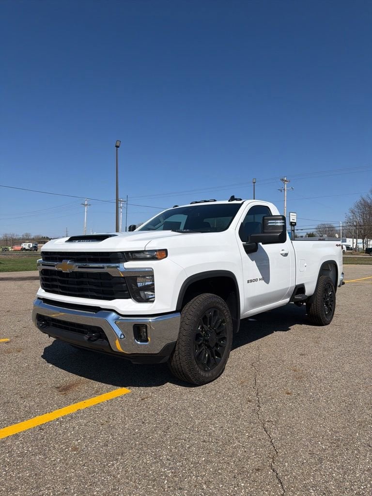 Meet the 2026 Chevrolet Silverado 2500 HD LT in crisp White — where heavy‑duty capability meets refined comfort. Built to work, this Silverado comes standard with 4WD, locking differential, traction and stability control, ABS with electronic brake assist, and rugged LT265/60R22 all‑terrain tires (full‑size spare included) for confidence on any surface. Inside you’ll find a roomy cabin with 44.5" front legroom, leather‑wrapped steering wheel, steering‑wheel mounted controls, cruise, dual climate controls and remote start with climate control for instant comfort. Safety features are comprehensive — driver/passenger airbags, front side airbags with head protection and a tire pressure monitor — while convenience includes keyless entry, power windows and heated mirrors. Backed by strong coverage (36 mo/36k basic, 60 mo/100k powertrain, 72 mo/100k rust), this Silverado 2500 HD LT is ready for the job — stop by today or call to schedule your test drive.