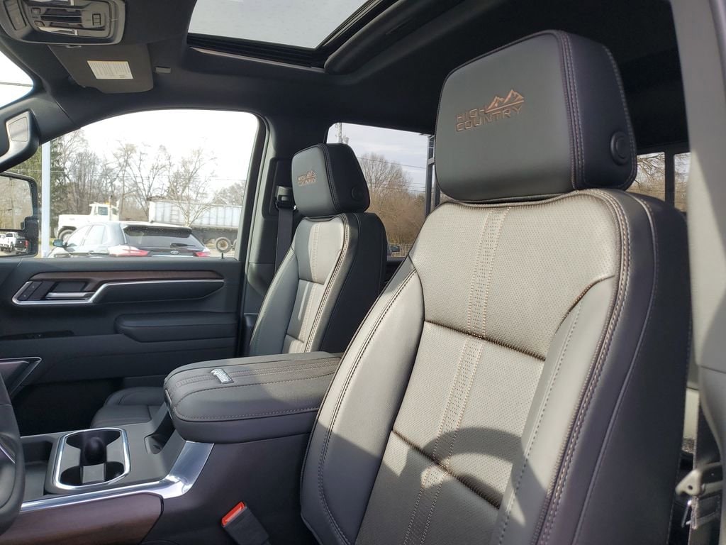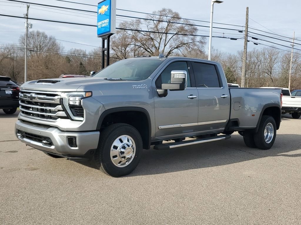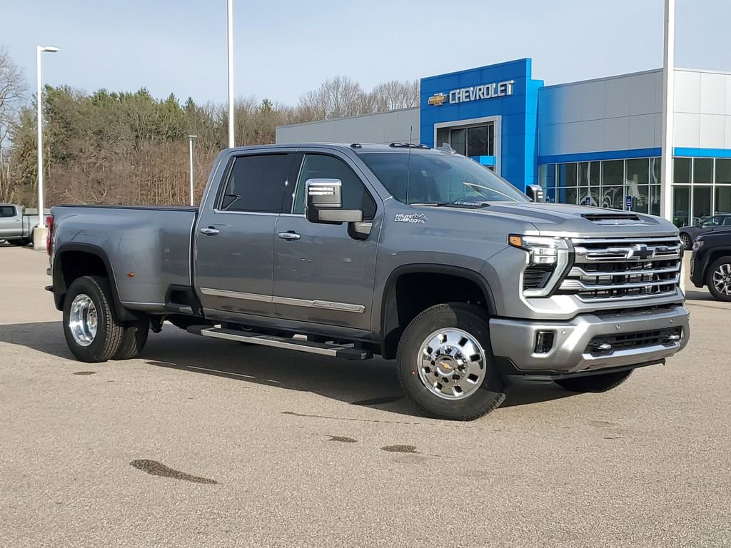 Meet the 2026 Chevrolet Silverado 3500 HD High Country — Gray exterior, Black leather interior — where heavy-duty capability meets premium comfort. This Silverado brings true work-ready performance with 4WD, locking differential, robust LT275/65R20 tires and a full‑size spare, plus advanced stopping and control systems (ABS, traction control and stability control) for confident towing and hauling. Inside, enjoy heated leather seats with multi-way power adjust, a heated leather steering wheel, dual-zone climate with remote start, and premium audio with subwoofer for long drives made comfortable. With roomy seating for five (44.5" front legroom, 43.4" rear) and keyless entry, it’s the luxury-capable truck built to handle the job — call today to schedule your test drive.